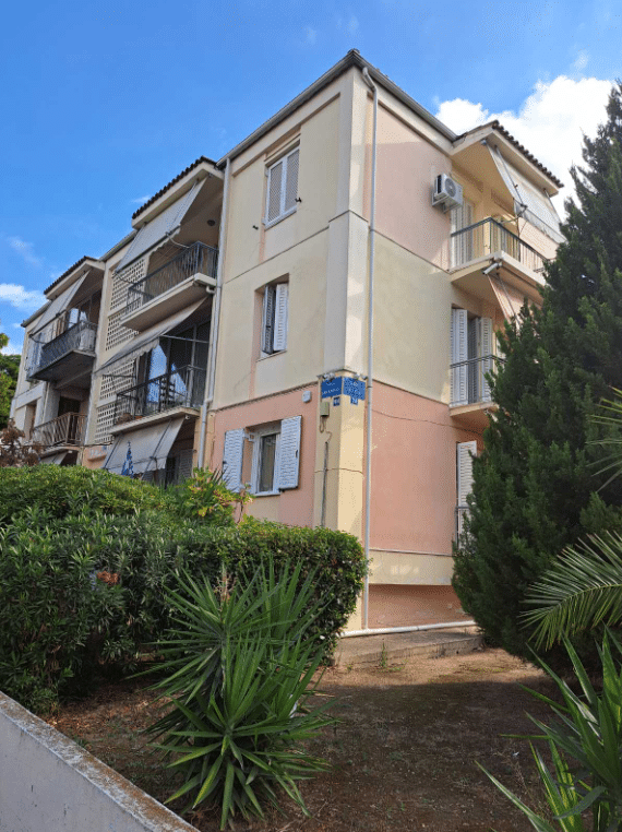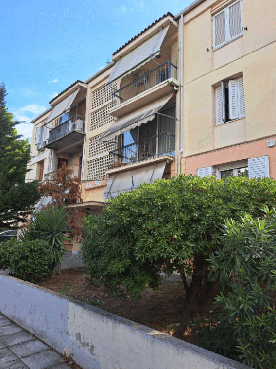 Διαμέρισμα 1ου ορόφου 79,12 τ.μ., πρόσοψης, 2 υπνοδωμάτια, καθιστικό, διάδρομος, μπάνιο, κουζίνα, αποθήκη και 2 βεράντες, σε οικόπεδο 21.443,35 τ.μ., στην Λεωφόρο Δεκελείας και στις οδούς Χίου και Ελευθερίου Βενιζέλου, Νέα Φιλαδέλφεια. Κοντά σε αγορά, σχολεία, στο άλσος Νέας Φιλαδελφείας και στην Εθνική Οδό Αθηνών – Θεσσαλονίκης.